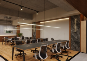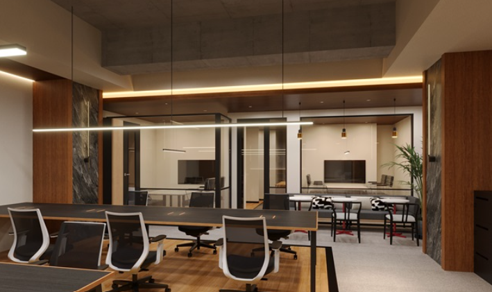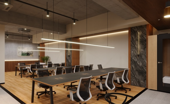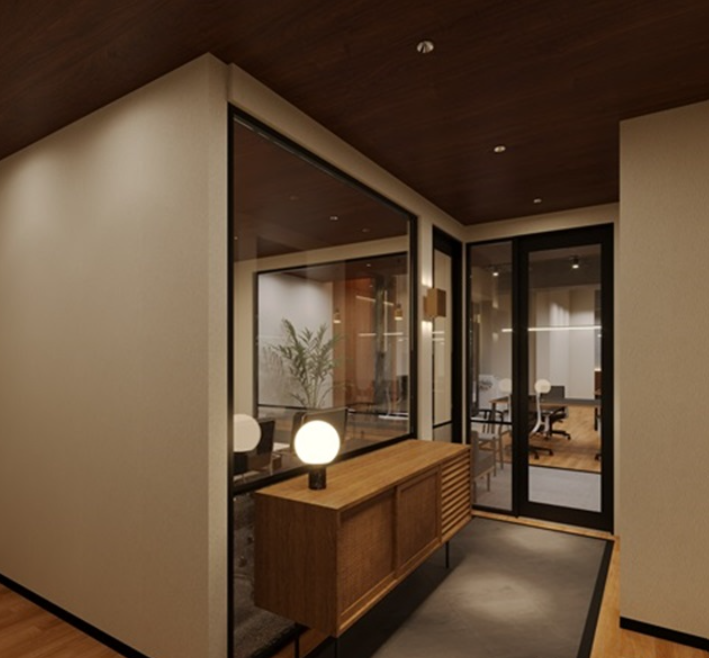 8名用執務室什器・内装造作付きフルセットアップ工事完了予定(Wi-Fi設備付)原状回復義務なし(現状変更した場合や破損等を除く)。