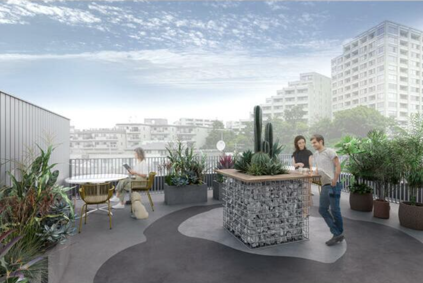 小規模オフィス+ショップ複合、デザイン系・スタートアップ向き、池尻・三宿・中目黒のカルチャーエリア。