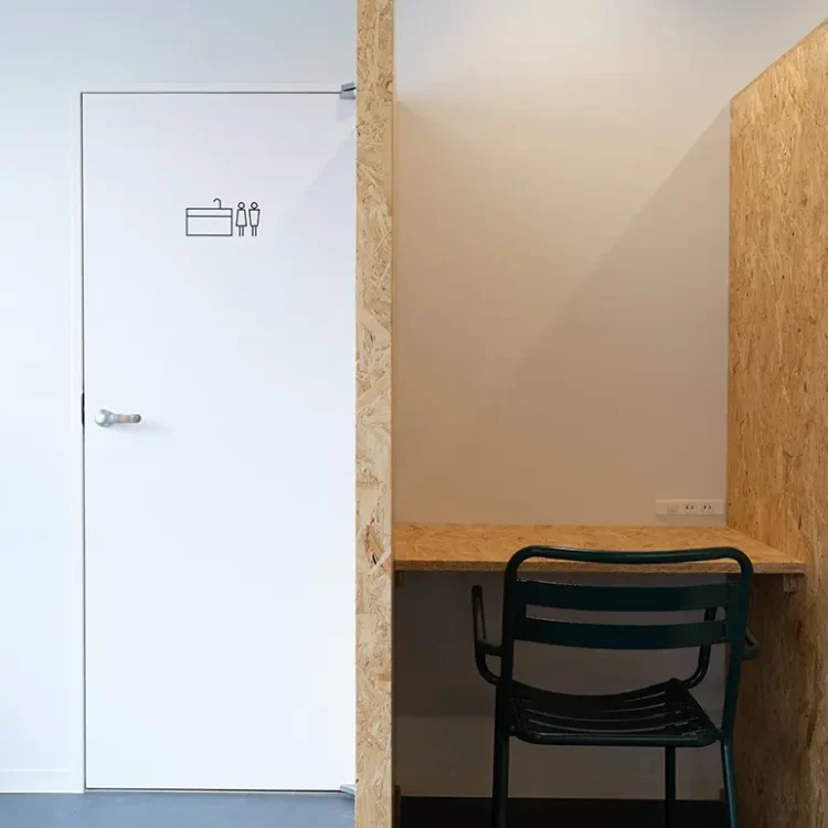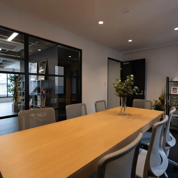 8名用の個室会議室が設置済み。執務室は15-25名前後でのご利用を想定。北参道のリノベセットアップオフィスです。
