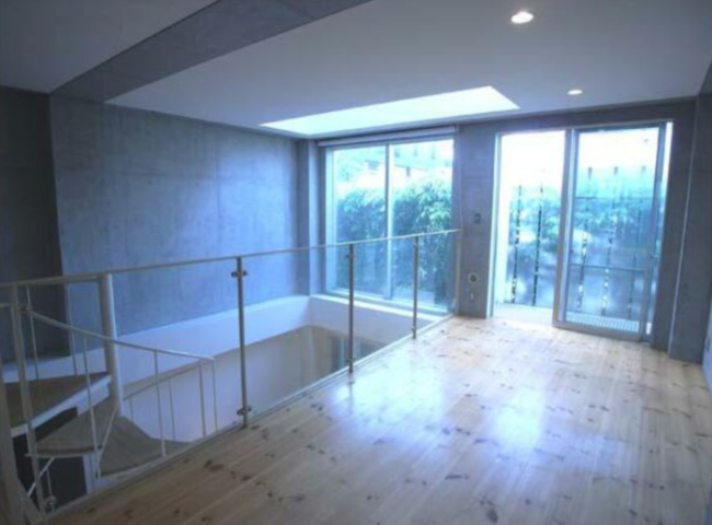 特に吹き抜けを利用した螺旋階段はこの物件の最大のウリ。