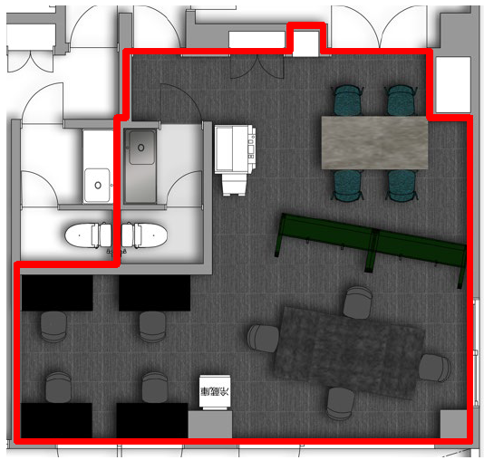 執務室は8名でのご利用を想定。恵比寿駅の什器付き内装付きオフィスです。