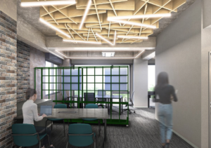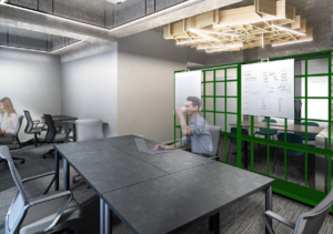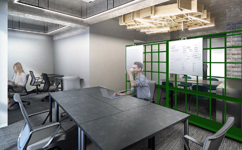 このエリアのフルセットアップオフィス、4名用の打ち合わせスペースが設置済み。