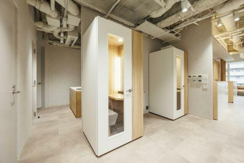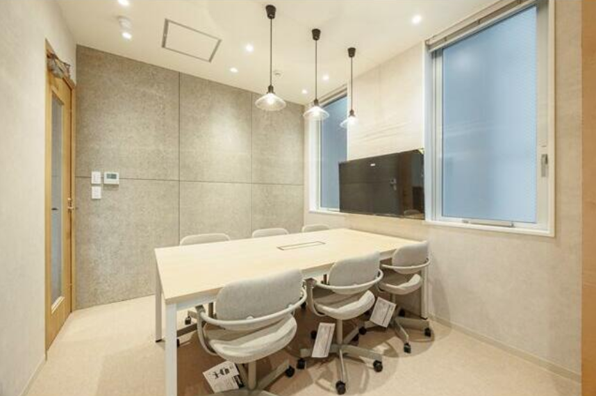 仕事帰りが楽しみなエリア。このエリアのフルセットアップオフィス、6名用の個室会議室と個室ブースが設置済み。