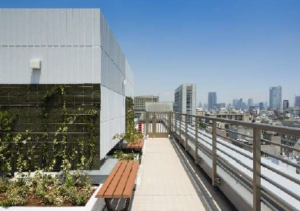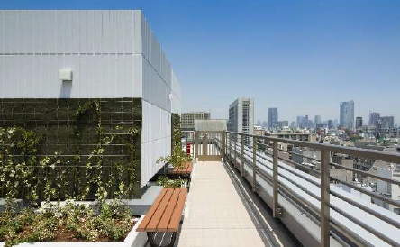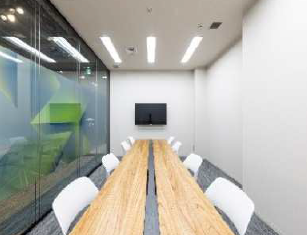 共用施設・サービス、レセプション(受付)対応、共用ラウンジ、会議室(6名用が複数)。 屋上テラス。