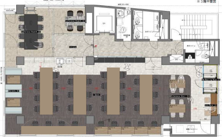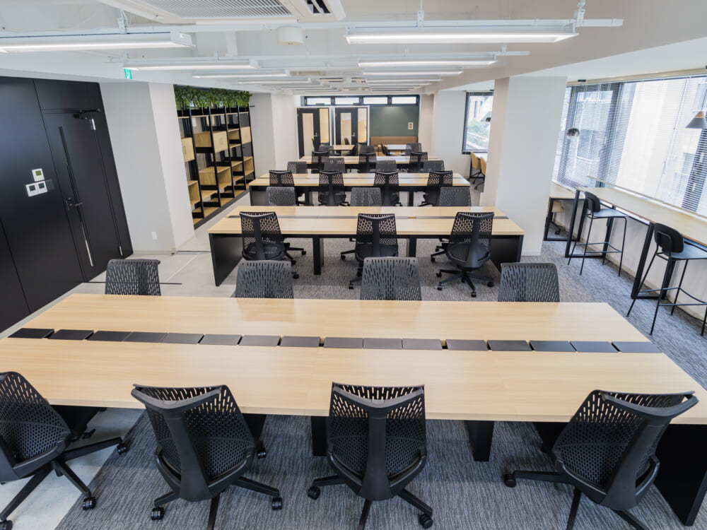 4名用・8名用の個室会議室と個室ブースが設置済み。執務室は35-45名前後でのご利用を想定。渋谷の内装付きオフィスです。