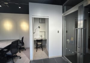 このエリアのフルセットアップオフィス、執務室の什器等が設置済み。トイレは男女別、喫煙所等も完備。
