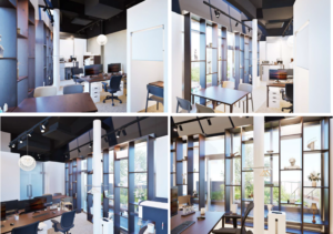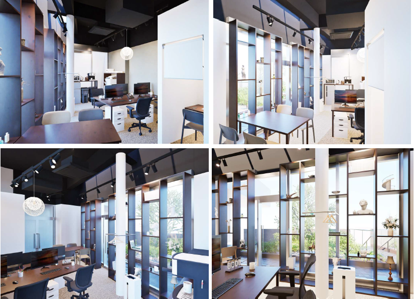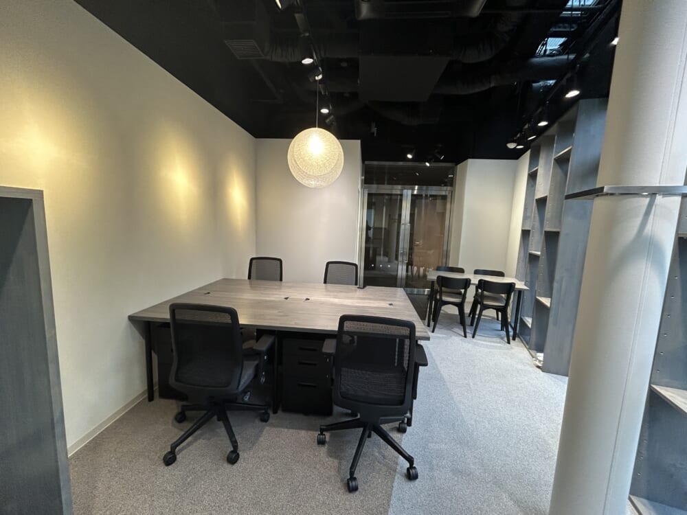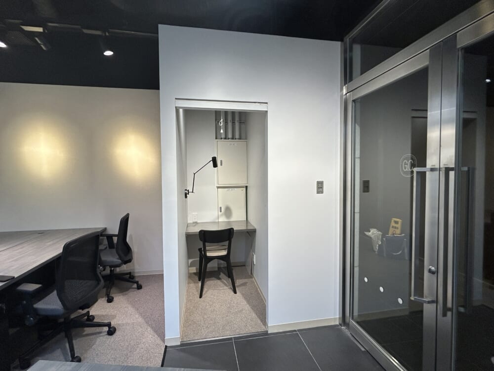 このエリアのフルセットアップオフィス、執務室の什器等が設置済み。トイレは男女別、喫煙所等も完備。