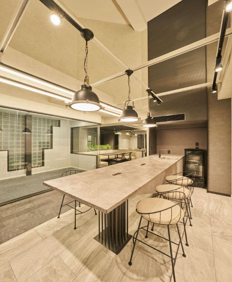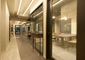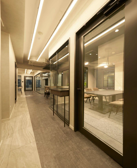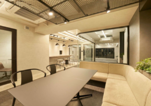 このエリアのセットアップオフィス、6名用の個室会議室とラウンジが設置済み。