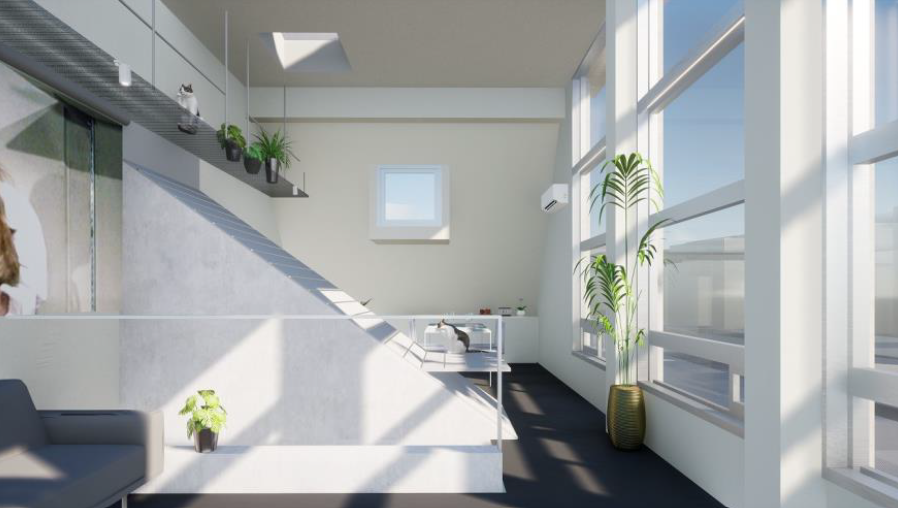 3階には床暖房設置、天井高は約 3.8 m と開放感のある空間。屋上テラス(ルーフテラス)付き。バルコニー・テラスがあり、屋外スペースとしても活用可能。