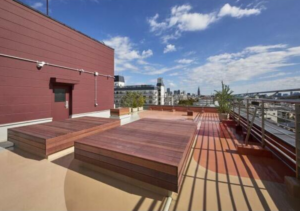 このエリアのシェアオフィスで、ショップ・ラウンジ・ルーフトップなど多機能なスペース を備えた施設としてリブランディングされています。
