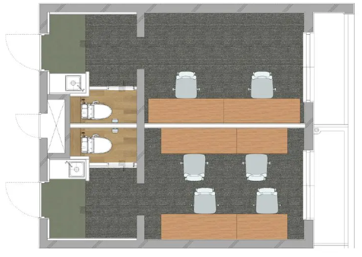 このエリアのフルリノベオフィス、執務室は最大8名でのご利用を想定。
