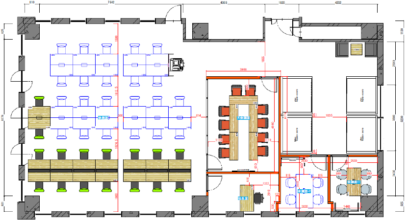 4名用×2・10名用の個室会議室と社長室が設置済みです。