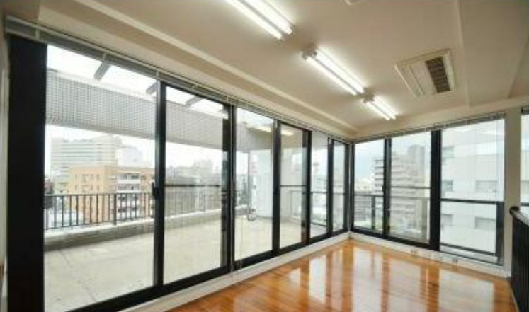 このエリアのメゾネットデザイナーズオフィス、大きな窓とバルコニーが魅力、