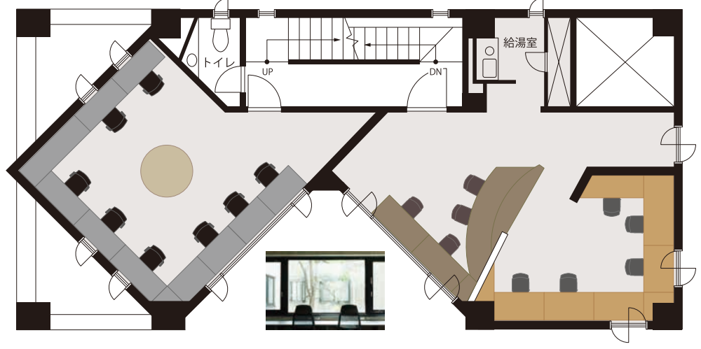 このエリアのセットアップオフィス、執務室は17名前後でのご利用を想定しています。