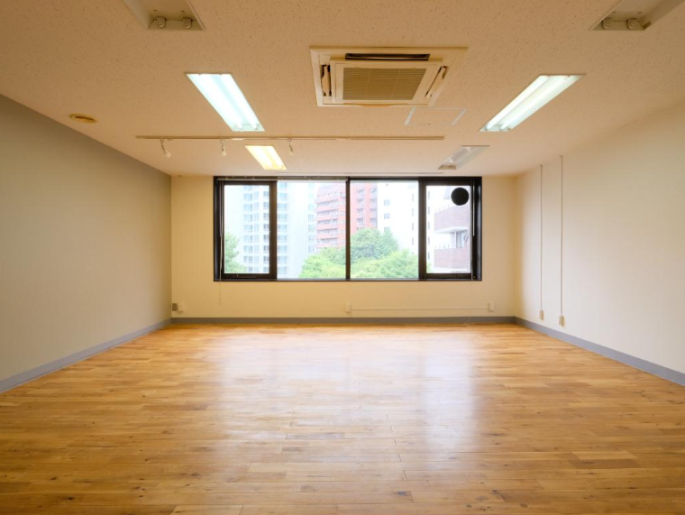大きな窓とフローリングが心地いい室内と