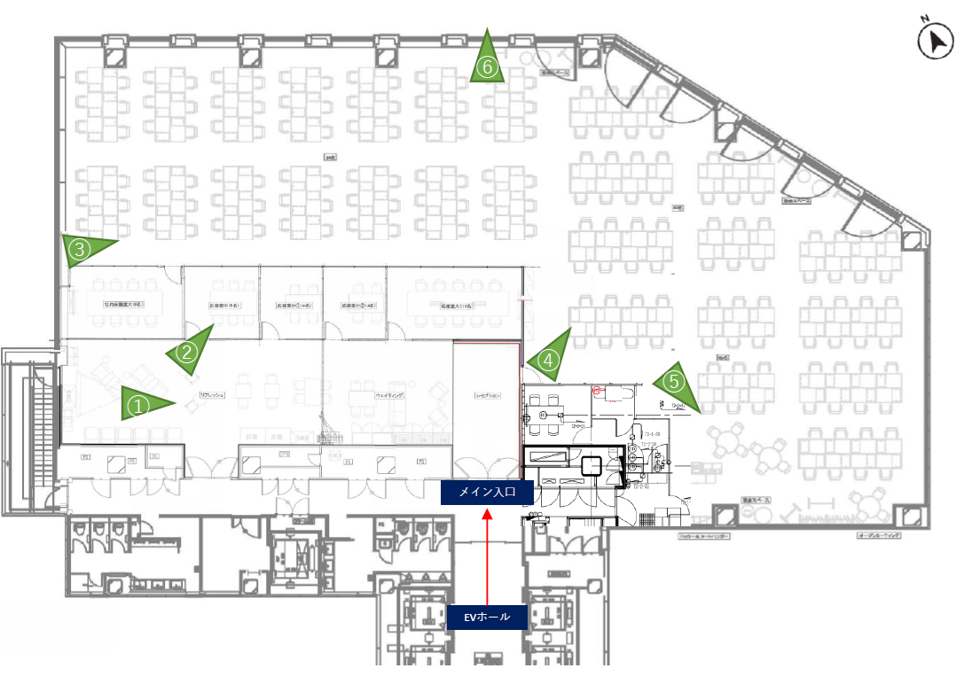 4名用×2・6名用・8名用・10名用の個室会議室とラウンジ、リフレッシュスペースが設置済みです。