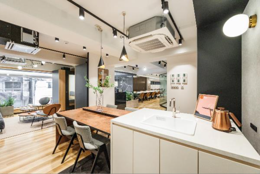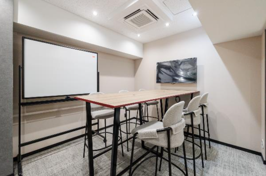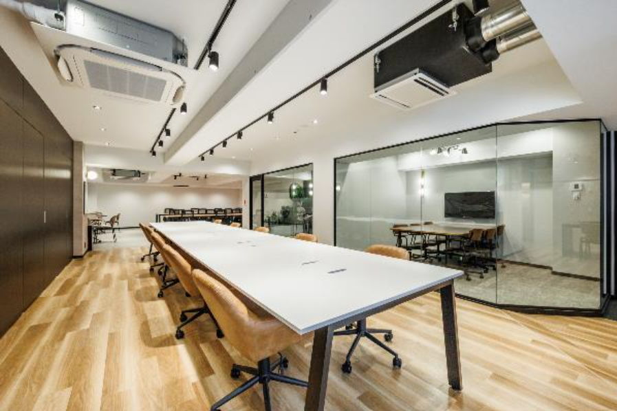このエリアのセットアップオフィス、6名用×2の個室会議室とラウンジスペースが設置済み。