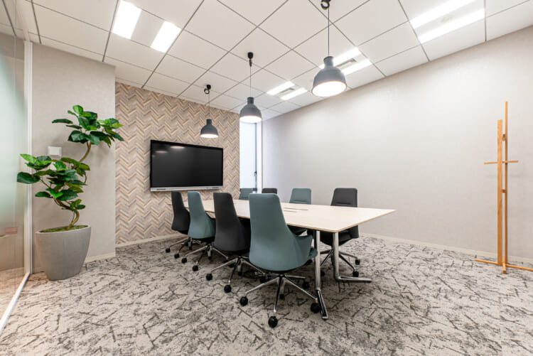 1階ラウンジ内に無料会議室あり。モニター付きの部屋もあるほか、プランによっては月12時間まで無料で利用できることもあります