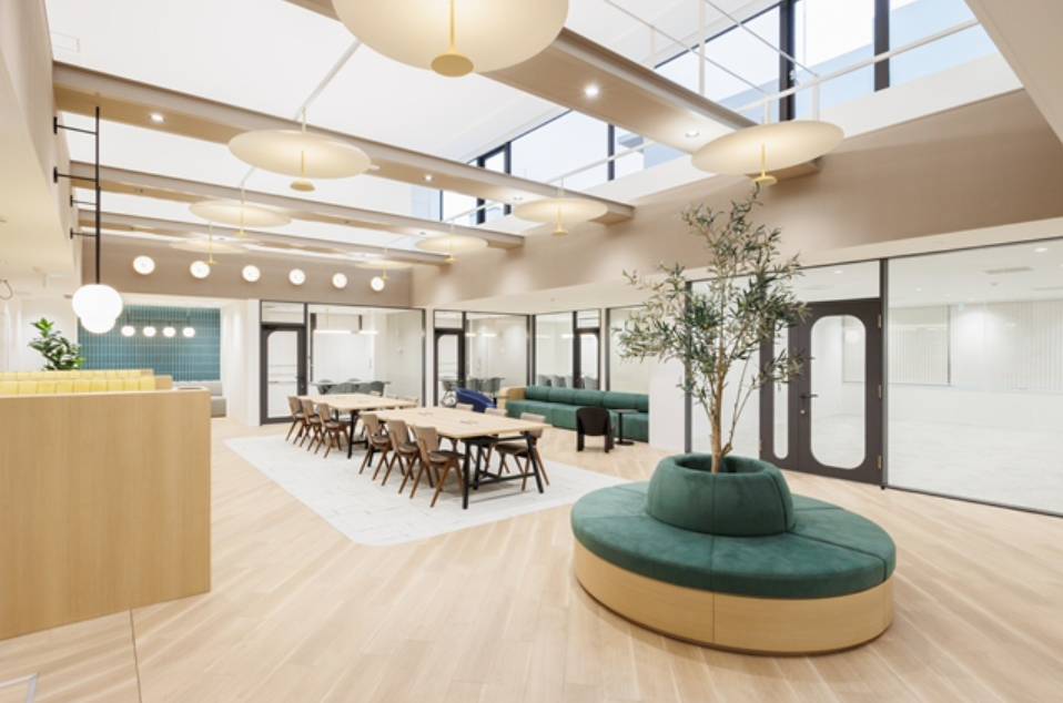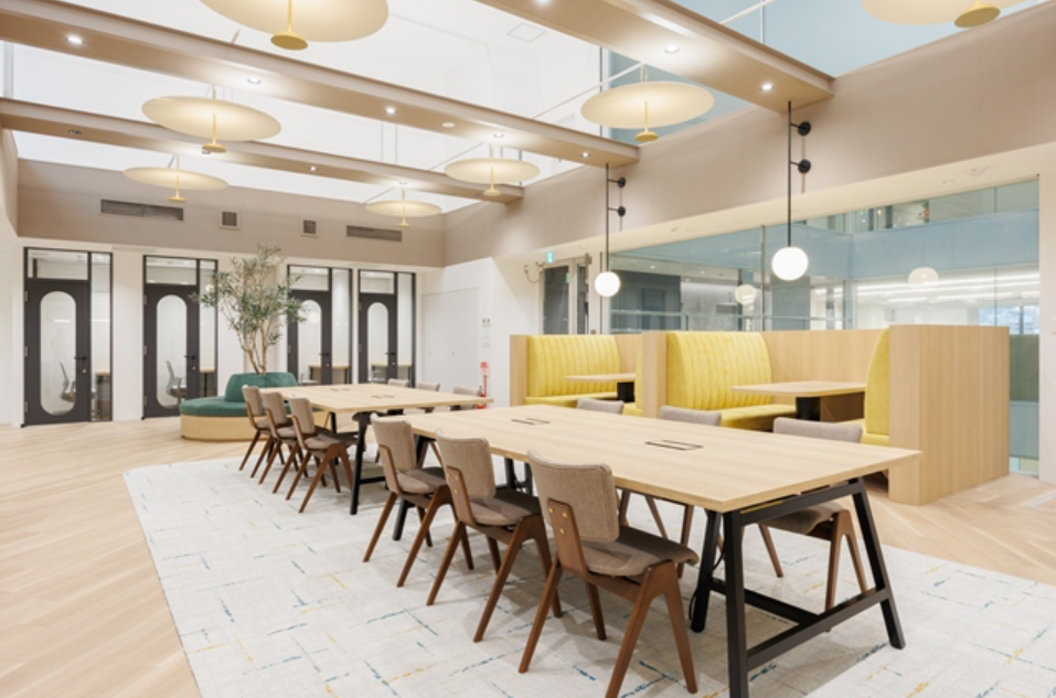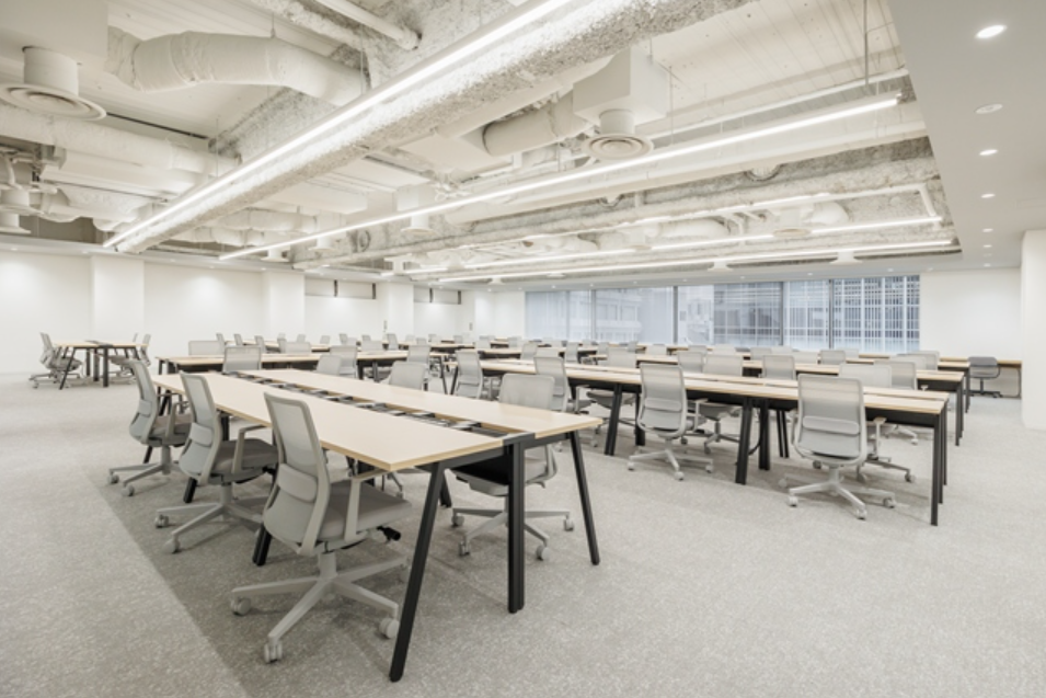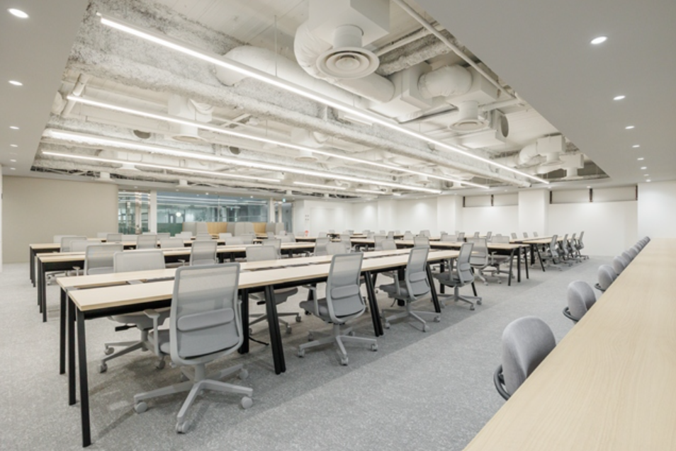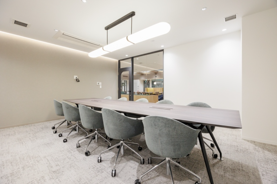 このエリアのセットアップオフィス、4名用×2・6名用・10名用の個室会議室とラウンジ、テレカンブースが設置済み。執務室は最大70名前後でのご利用を想定。