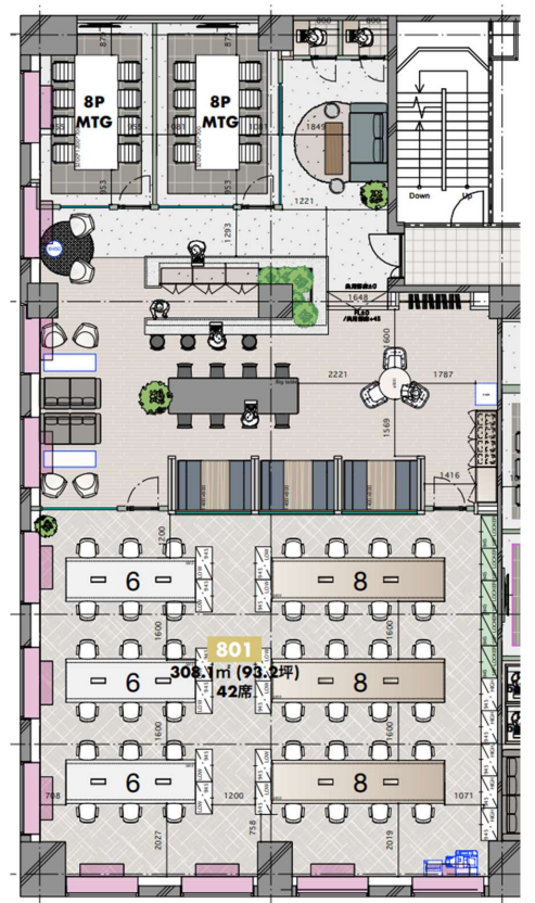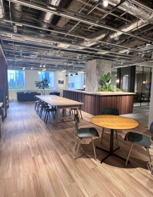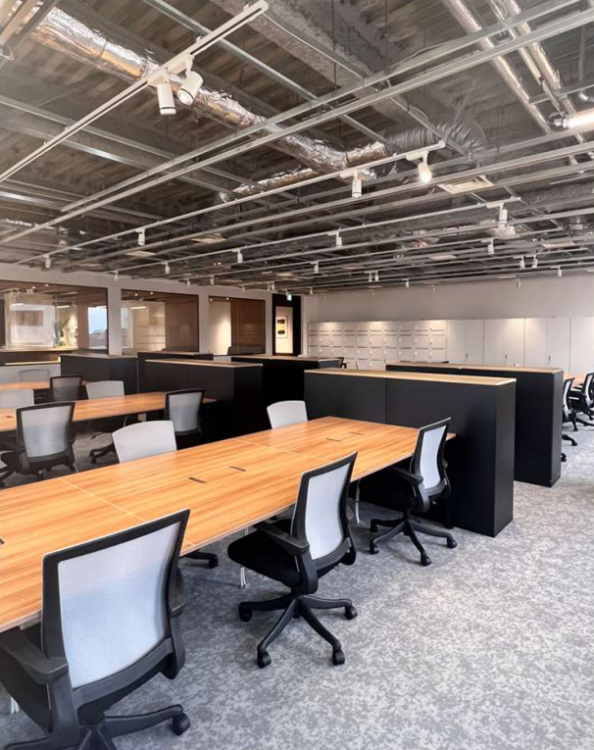 執務室は42名前後でのご利用を想定。1階には共用のラウンジがあり、大会議室やミーティングスペースを活用できる。