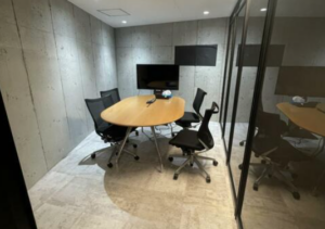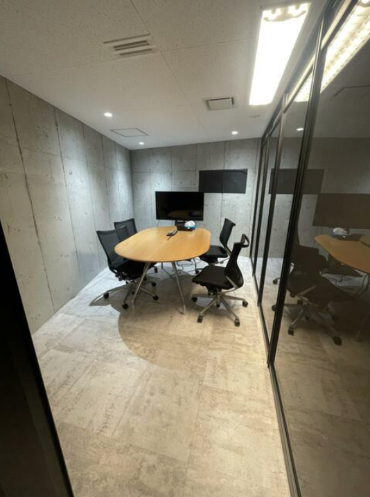 このエリアの居抜きオフィス、mtgスペースが設置済み。執務室は10名前後でのご利用を想定。