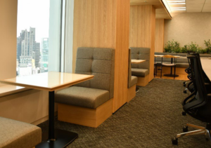 周辺は、西新宿の高層ビル群が立ち並ぶビジネスエリアでありながら、飲食店や商業施設も充実しています。入居企業専用の食堂・ラウンジ・カフェ・会議室などを備えたワークスペースがあります。