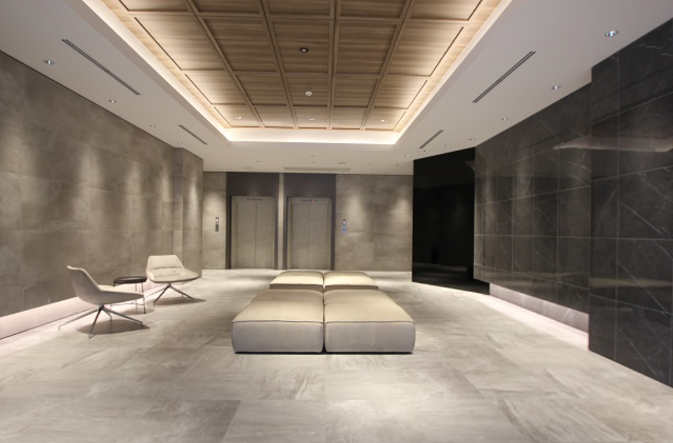 最上階ラウンジあり。周辺には新宿御苑、少し歩くと新国立競技場など緑が豊富な心地いい環境。