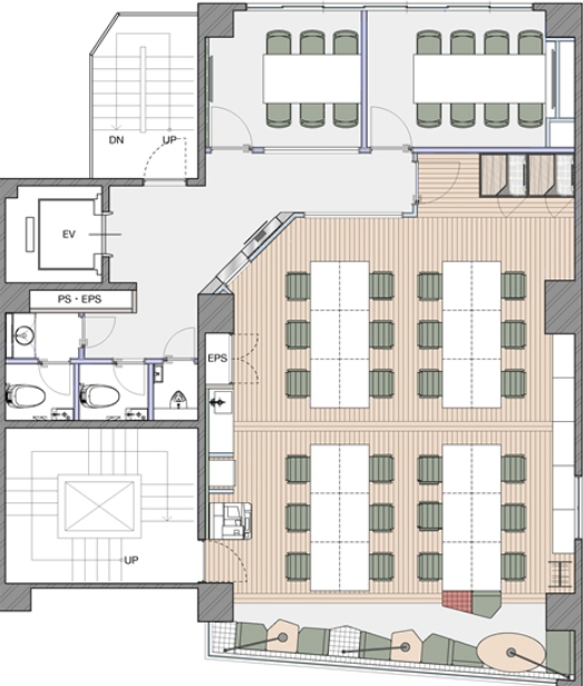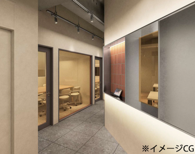 6名用・8名用の個室会議室と個室ブースが設置済みです。
